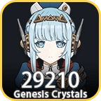 - Standard Bundle:Contains 6480+1600 Genesis Crystals ×3 + 3280+600 Genesis Crystals + 980+110 Genesis Crystals. A total of 29,210 Genesis Crystals will be awarded (excluding the first top-up bonus), which can satisfy a total of 180 pulls.