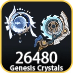 - All Pack Bundle contains 60 Genesis Crystals + 300 Genesis Crystals + 980 Genesis Crystals + 1980 Genesis Crystals + 3280 Genesis Crystals + 6480 Genesis Crystals (Blessing of the Welkin Moon is not included)