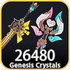 - All Pack Bundle contains 60 Genesis Crystals + 300 Genesis Crystals + 980 Genesis Crystals + 1980 Genesis Crystals + 3280 Genesis Crystals + 6480 Genesis Crystals (Blessing of the Welkin Moon is not included)
