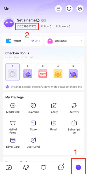 - Nimo TV IDはニックネームの下に表示されます。